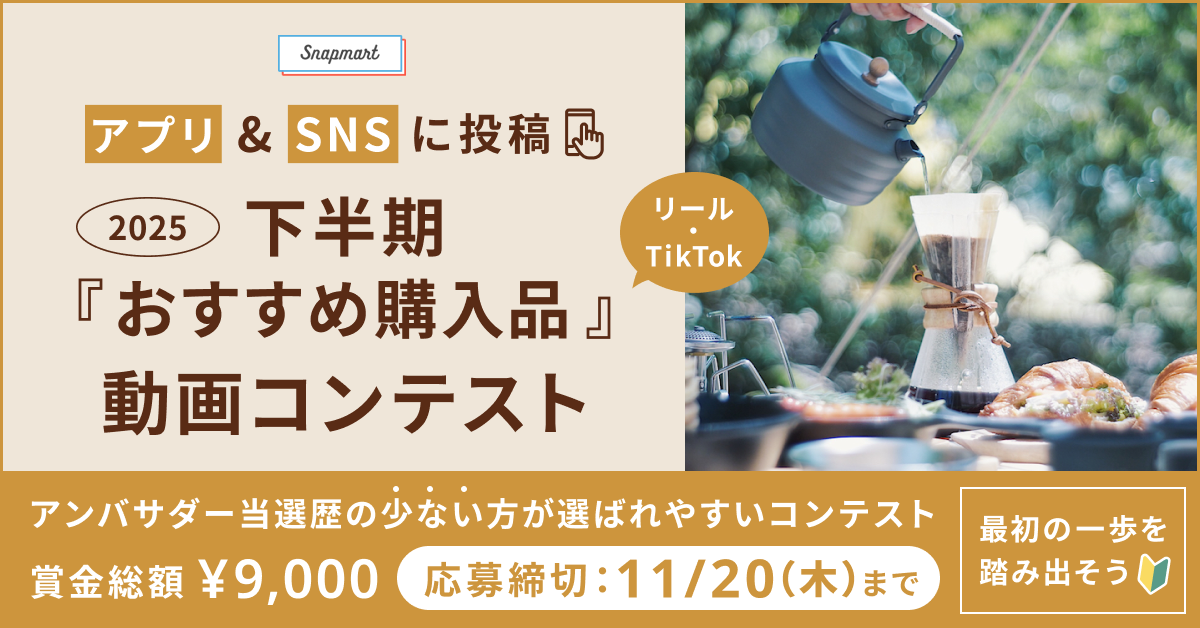 Snapmart主催の、アプリ&SNSに投稿『下半期おすすめ購入品』動画コンテストへの参加者を募集します!