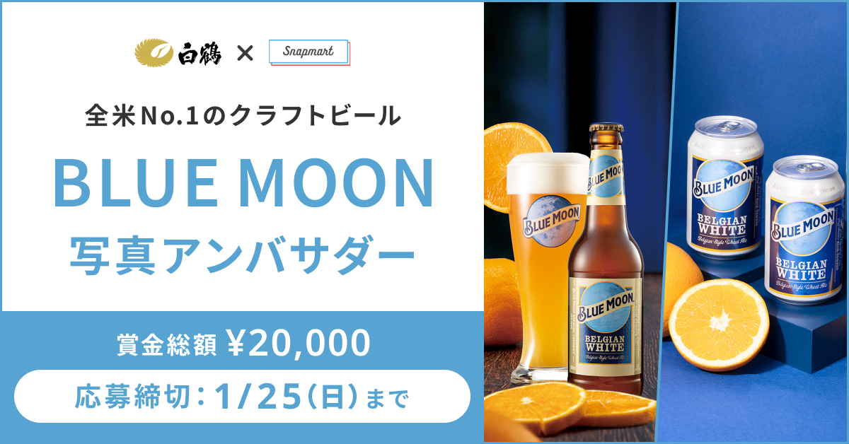 ・BLUE MOONとハーブのペアリング賞(10,000円×1人) ・BLUE MOONで応援賞(10,000円×1人) ※当該賞金は、Snapmart内の「販売報酬」として当社から該当者のアカウントに付与されます。 |