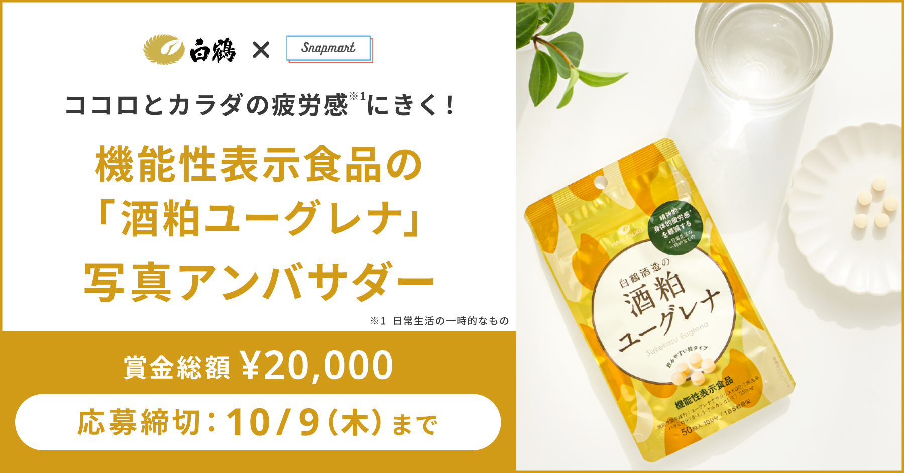 前向きな毎日をサポートするサプリメント「白鶴酒造の酒粕ユーグレナ」の写真アンバサダーを10名募集します!