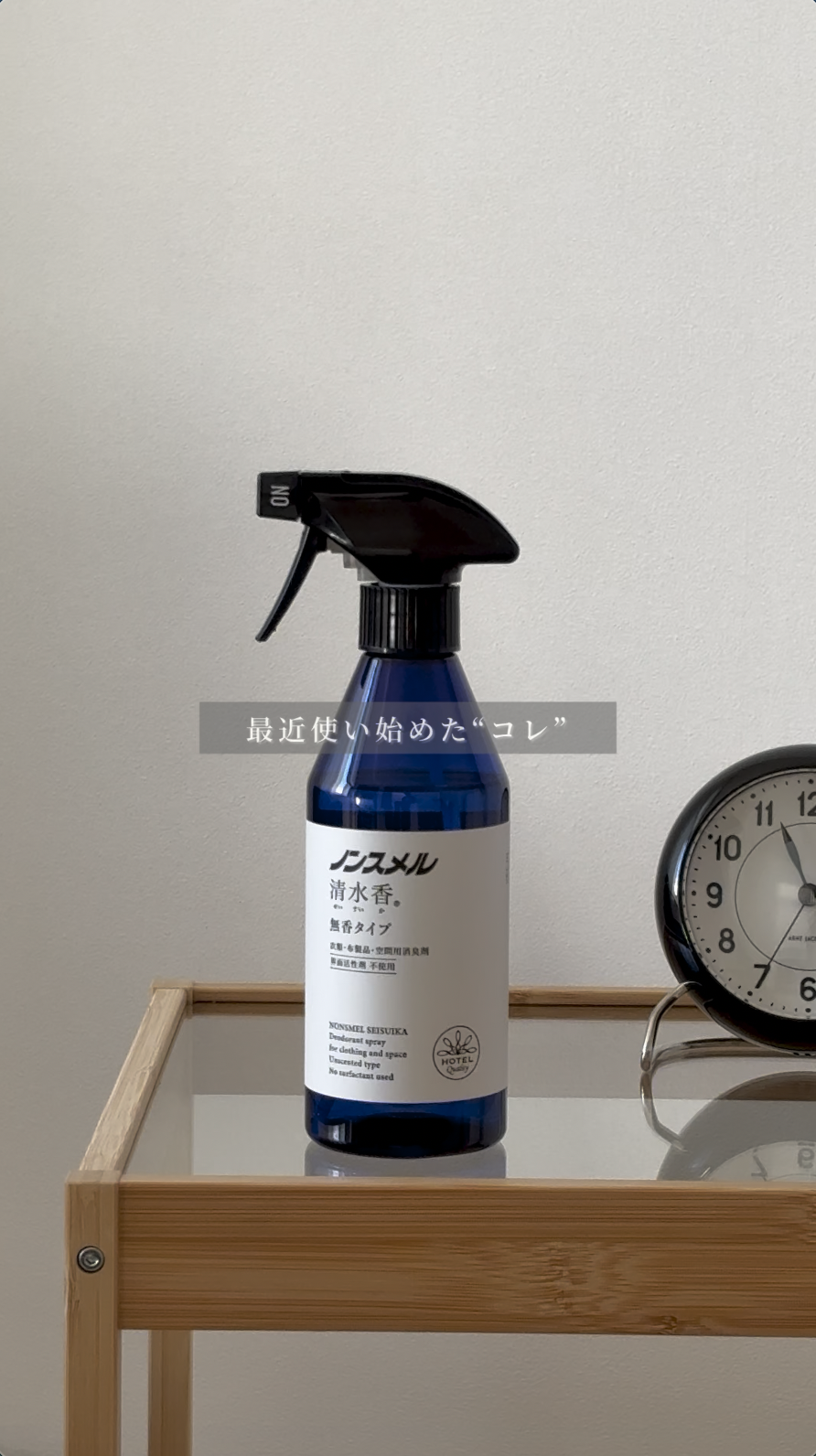 ホテル業界のプロも認める衣類・布製品・空間用の消臭スプレー「ノンスメル清水香」。