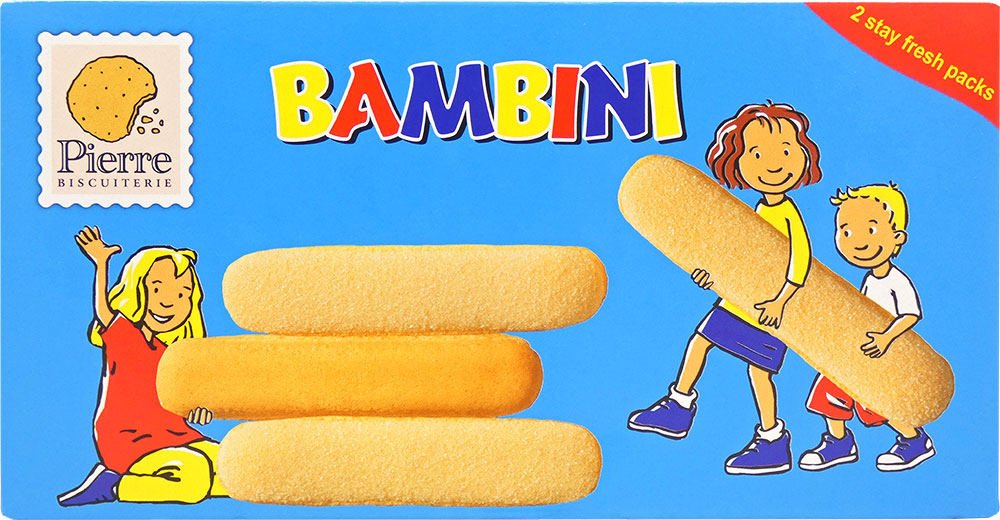 バンビーニはフランス生まれのフィンガービスケット。ティラミスなどの土台に使うとスポンジやビスキュイを手作りする手間が省け、工程をぐっと時短できます。そのまま食べてもおいしいので、スイーツ全体の味わいも引き上げ、クリームと一体化してくちどけ良く仕上がることから「ティラミス作りにはバンビーニしかもう考えられない」というお声もいただきます。また、砂糖・小麦粉・卵など、とてもシンプルなもので作られているので安心してお召し上がりいただけます。ティラミスやシャルロットケーキなどの製菓材料としてご使用いただくことが多いですが、多くの方が口をそろえておっしゃるのは「そのまま食べてもおいしい」こと。ぜひお試しください。