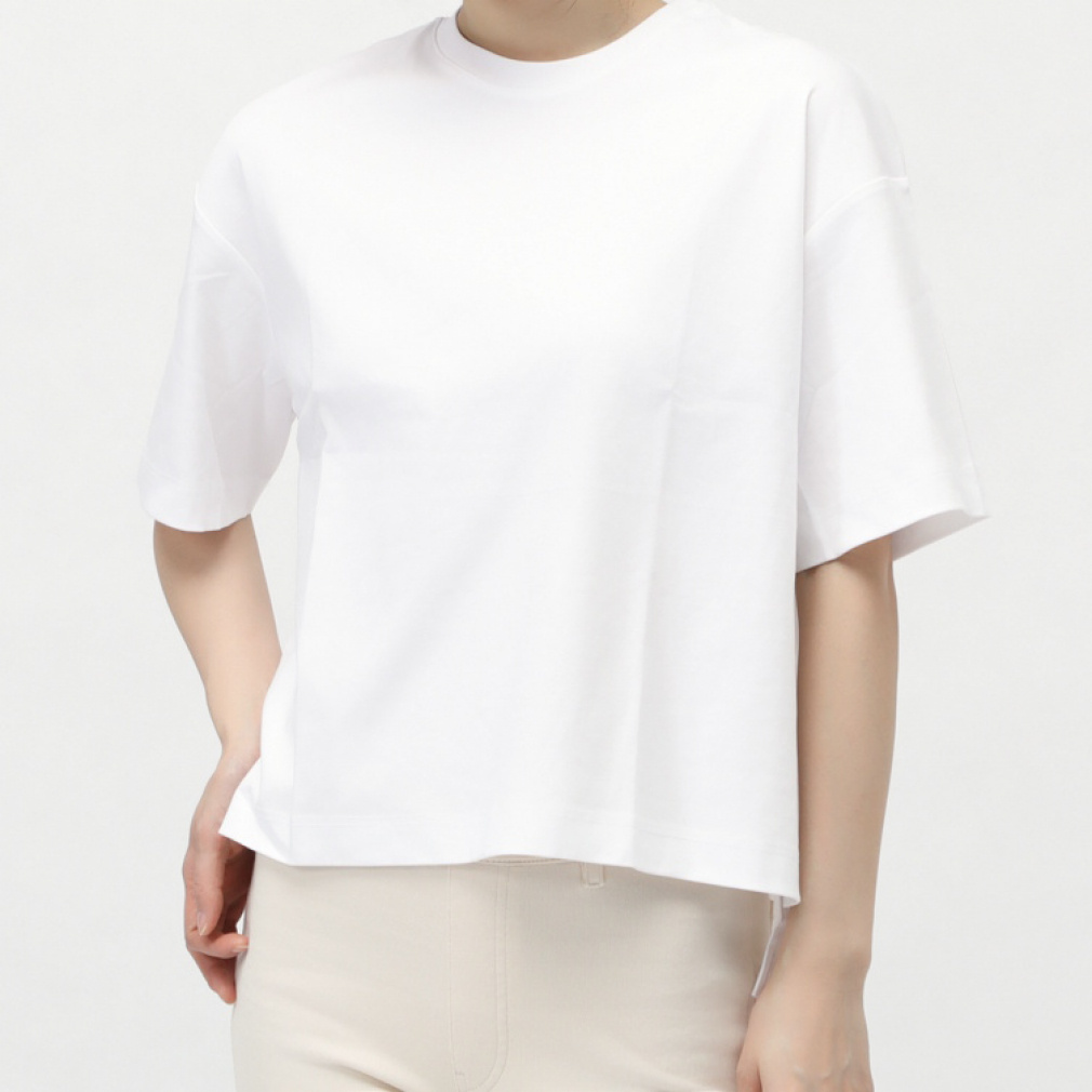 滑らかなタッチで着心地の良いコットンTシャツ。キレイ目なコーディネートにも使いやすく高見えするTシャツです。また、さらっとした肌触りで暑い日にも最適。洗濯してもシワになりにくいのがうれしいポイントです!こちらはゆったりとしたオーバーサイズシルエットでパンツやスカートにも合わせやすいTシャツです。